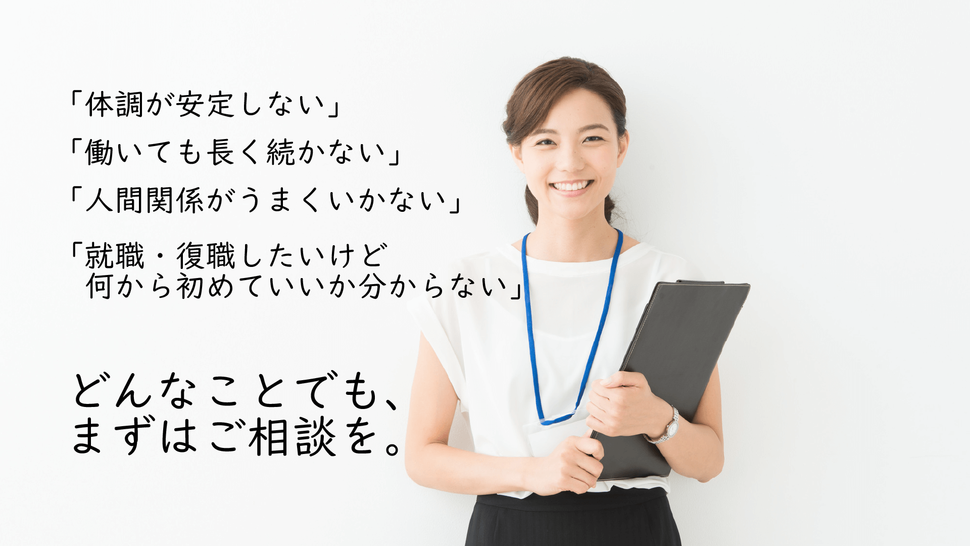 見学は、スタッフとじっくりと話ができる機会です。自身の課題や要望を十分に伝えられるよう、質問や相談内容を事前に準備しておくことが大切です。「体調が安定しない」「働いても長く続かない」「人間関係がうまくいかない」「就職・復職したいけど何から初めていいか分からない」など、漠然としたものでも問題ありません。